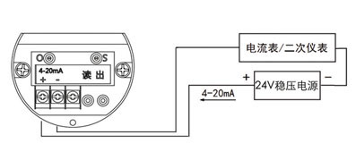 2.校驗:以二線制0-8%硫酸濃度變送器為例,按圖四接線。